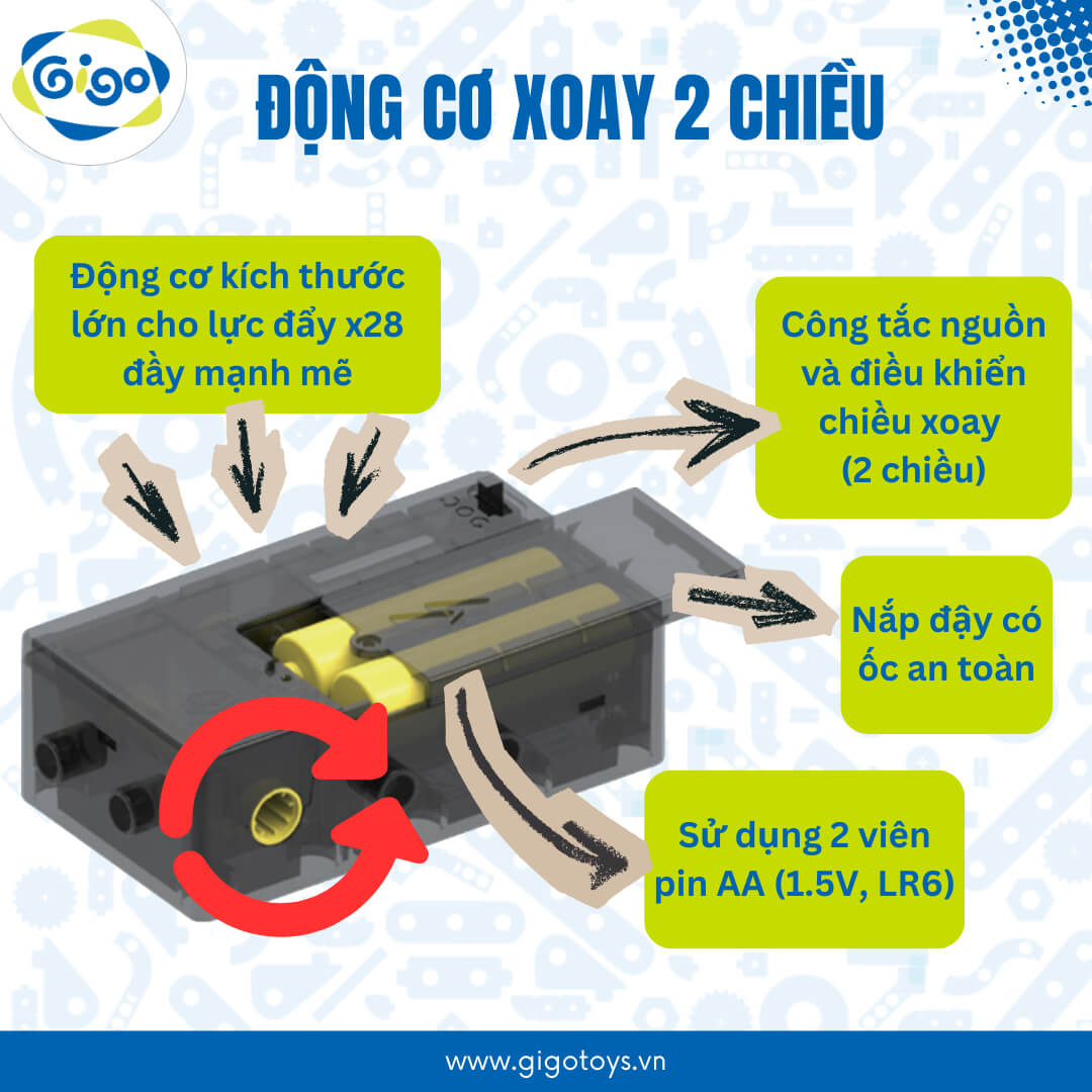 - Động cơ hoạt động cần 2 viên pin AA/LR06, sản phẩm không bao gồm pin.