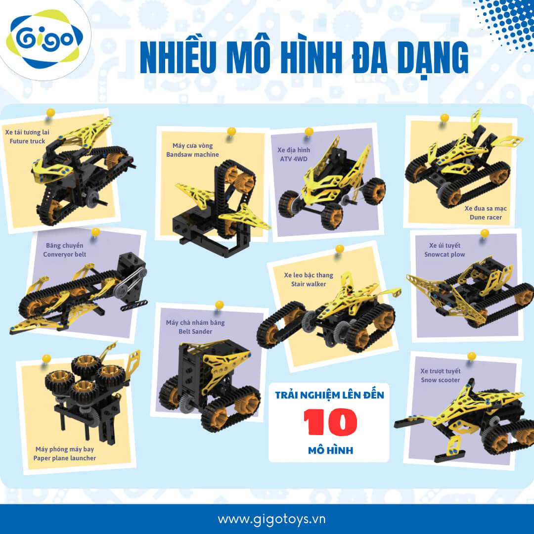 - Sản phẩm có chủ đề tìm hiểu về ổ đĩa vành đai, bánh xe và lốp xe tăng; Các cỗ xe mô hình thiết kế theo phong cách Offroad chuyên cho các loại địa hình khó.